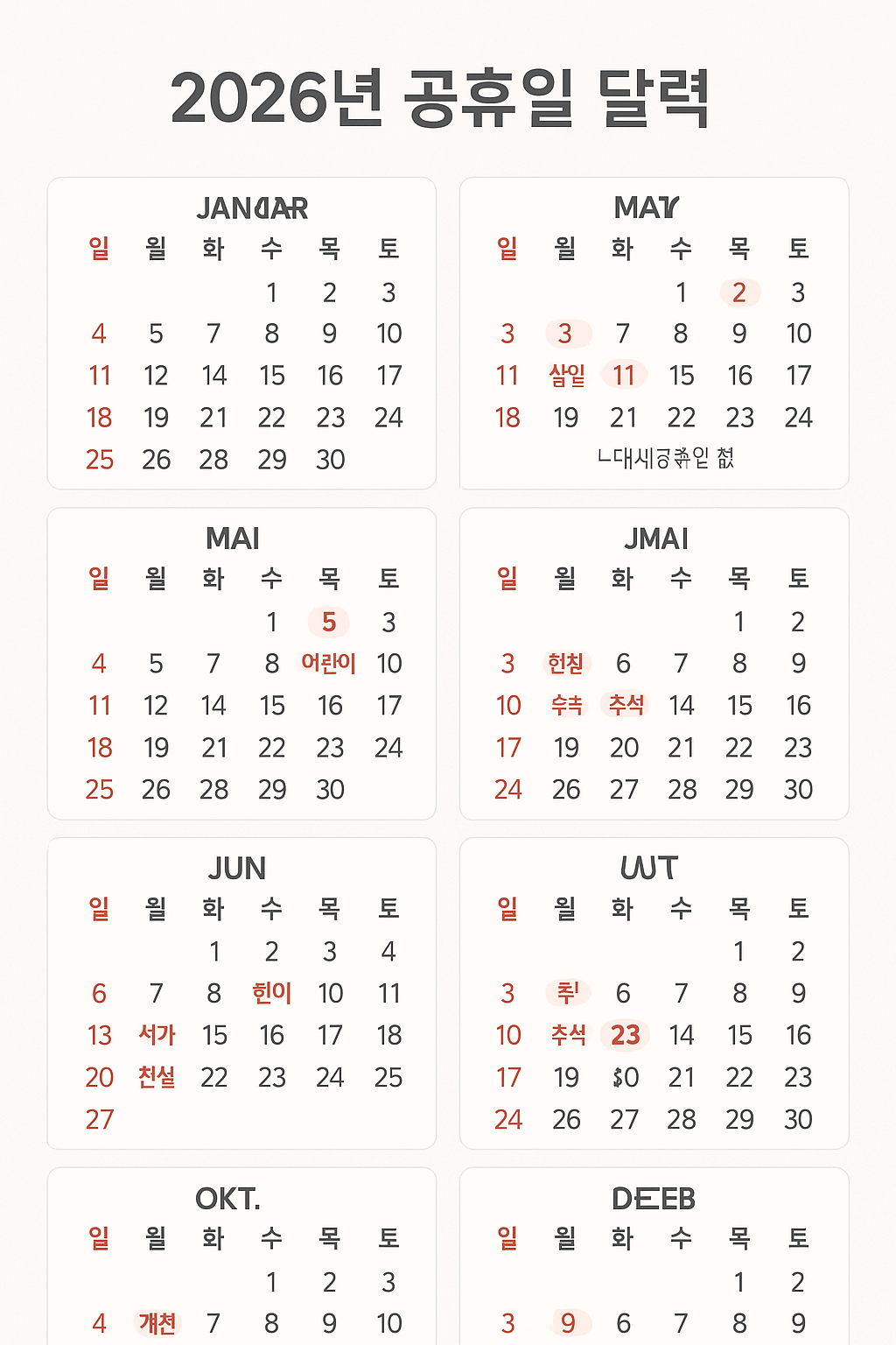 올해도 어김없이 찾아온 '공휴일 달력 검색 시즌'! 미리 알아두면 유용한 2026년 공휴일, 연휴 정보, 대체공휴일 적용일, 황금연휴 꿀팁까지 한 번에 정리해드립니다. 직장인, 자영업자, 학생 모두에게 필요한 정보이니 저장해두시고 계획 세울 때 참고하세요!