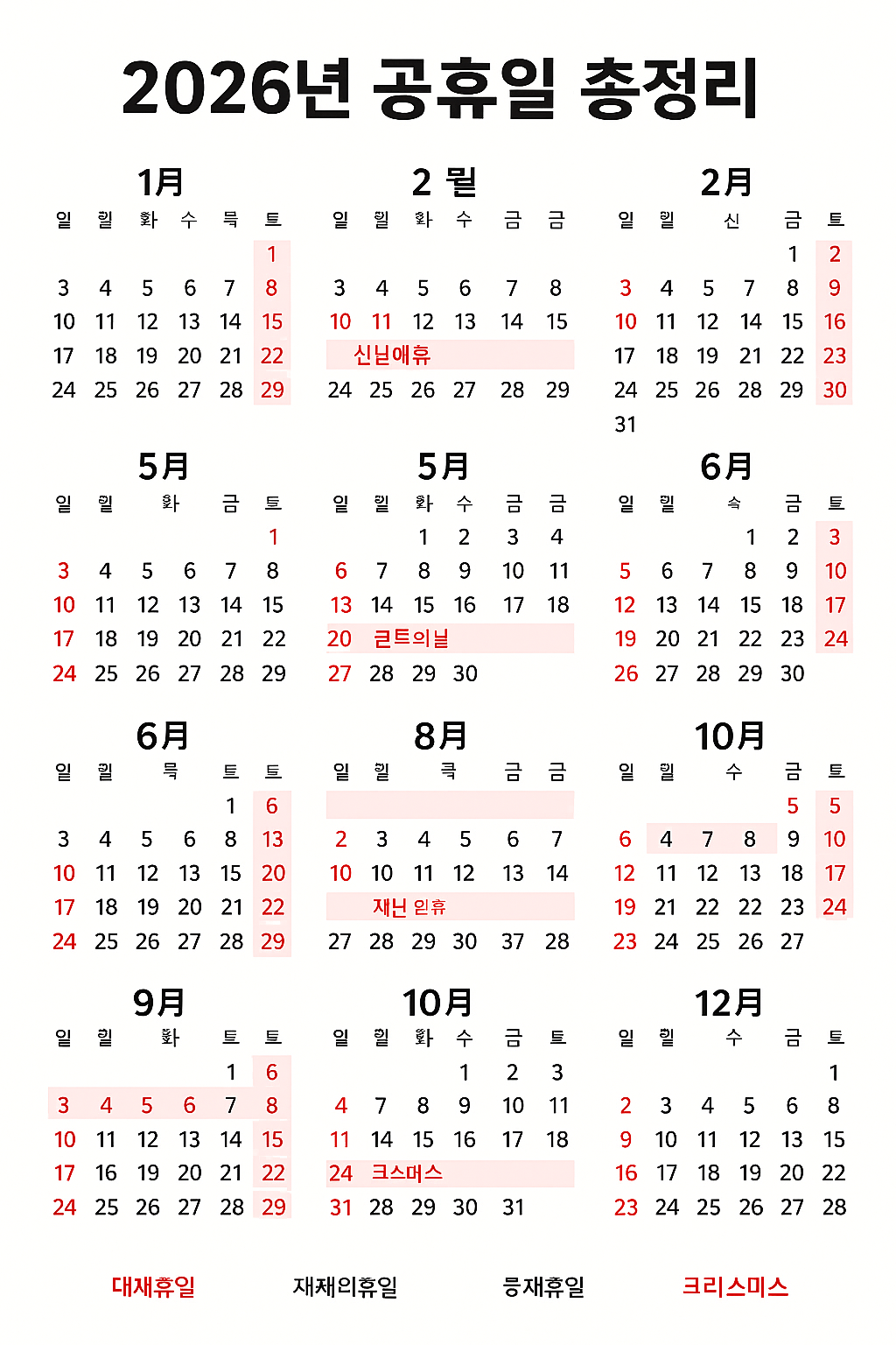 🗓️ 2026년 공휴일 전체 목록