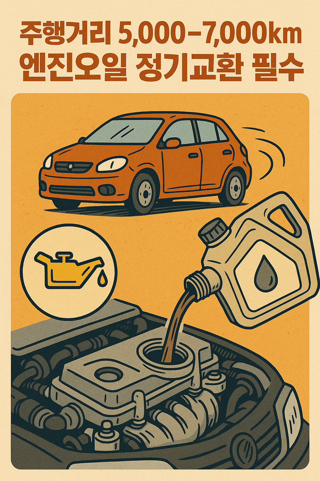 - 주행 거리 5,000~7,000km 사이 교체: 엔진오일은 정기 교환이 중요