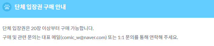 | 얼리 입장권 | 14,000원 | 20,000원 | 조금 일찍 입장 가능 |