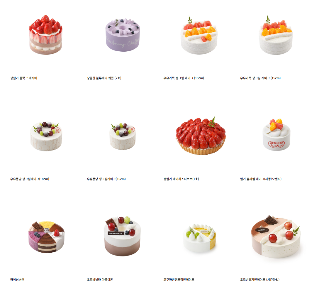 아래는 최근 공개된 파리바게뜨 크리스마스 / 홀리데이 케이크 주요 제품과 가격대입니다. (정가 기준 / 일부는 예상가)
