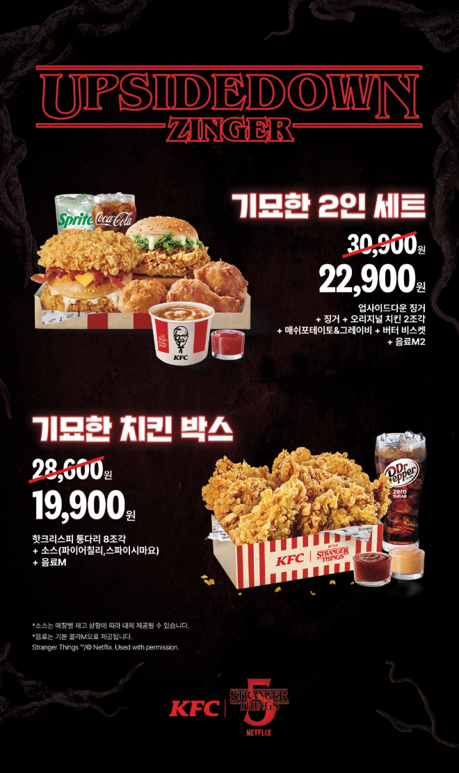 '업사이드다운(Upside Down)'이라는 이름처럼, 기존 징거버거의 구성을 위아래 뒤집은 독특한 형태로 만든 제품입니다.KFC의 시그니처 징거패티는 그대로 유지하면서,📌 빵 대신 치킨 패티가 양쪽