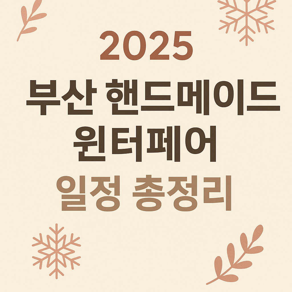 | 🎨 부산 핸드메이드 페어 윈터 | 2025년 12월 13일(토) ~ 12월 15일(월) | BEXCO 제1전시장 | 약 300개 부스, 전국 인기 작가 참여 |