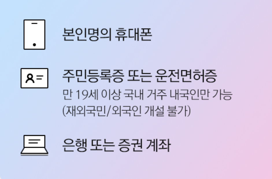 계좌개설을 시작하기 전, 아래 준비물만 있으면 됩니다.