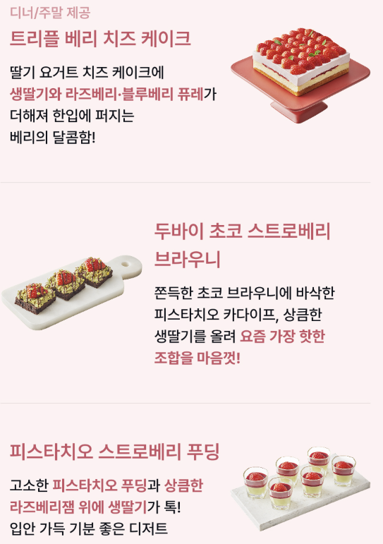 - 🍓 생딸기 디저트: 딸기 무스, 타르트, 컵케이크