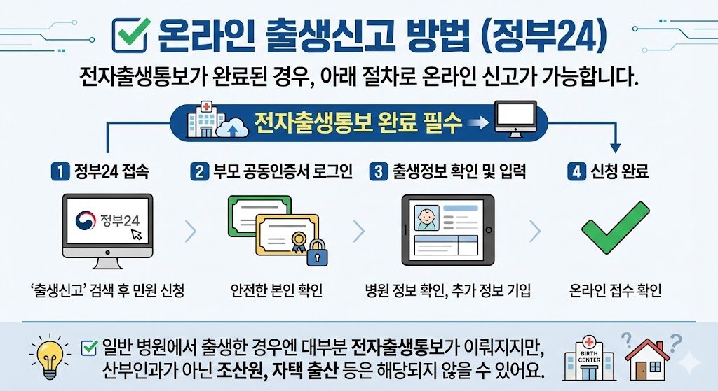 (단, 병원에서 전자출생통보가 완료된 경우에만 온라인 신청 가능)