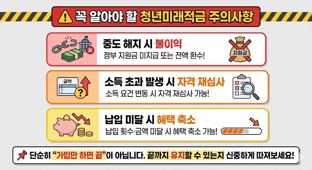 청년미래적금은 혜택이 큰 만큼 유지 조건도 중요합니다.